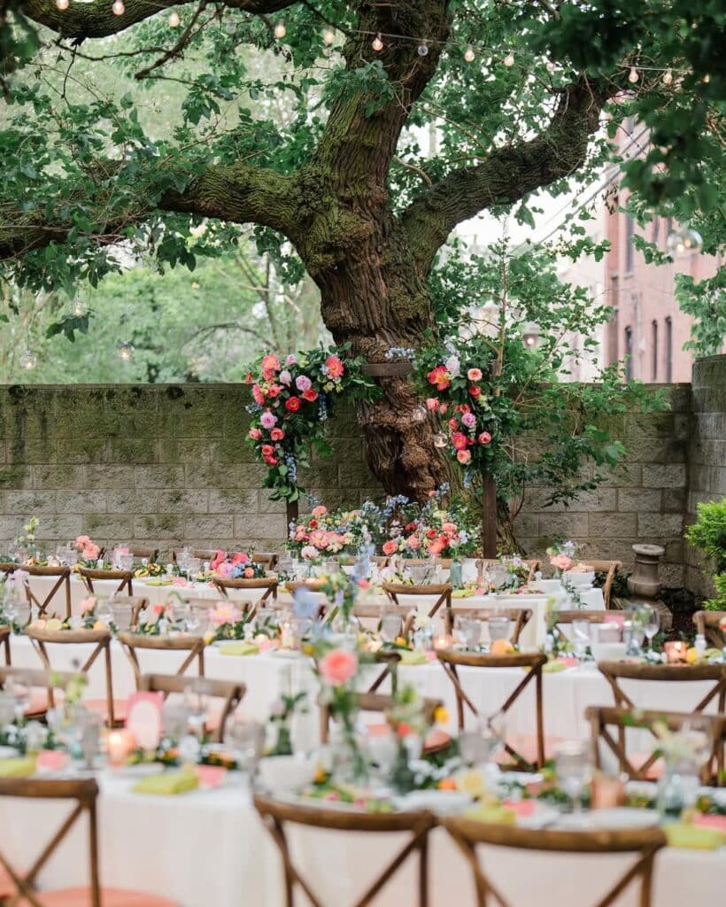 Chicago’s Colvin House set the stage for a breathtaking outdoor wedding that embraced nature’s beauty with a vibrant and sophisticated color palette. With lush floral arrangements, soft candlelight, and vintage-inspired touches, this event was a testament to the magic of intentional design and curated event rentals.