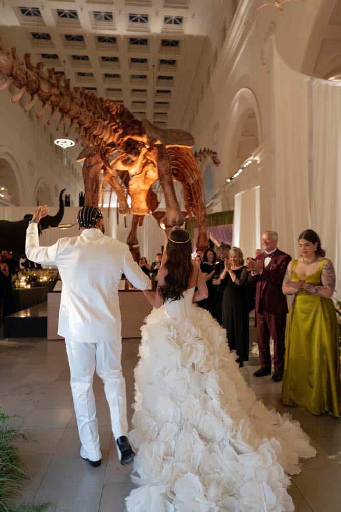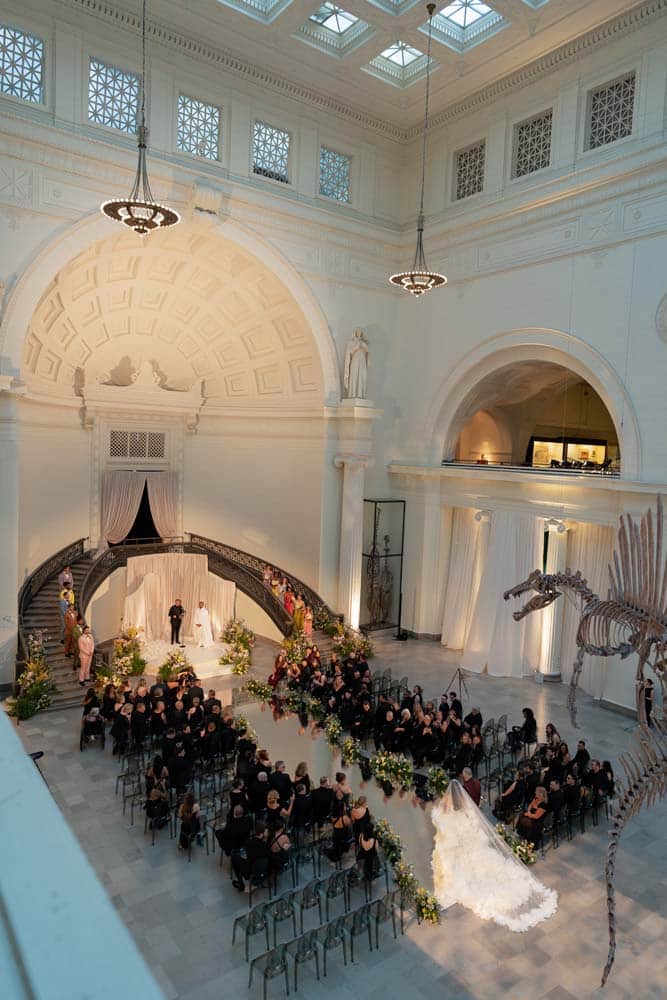 Wedding Photographer: Abby Jiu | Wedding Planner: Estera Events | Floral Design: HMR Designs | Ceremony and Reception Venue: Field Museum | Officiant: John Green | Bride’s Hair: Erin Graham Hair | Bride’s Makeup: Glam Atelier Chicago | Invitations and Paper Goods: Maison Blanche | Music: Aragon Artists | Catering: Food for Thought | Cake: ECBG Studio | Rentals: Tablescape Event Rentals, Nuage Designs Linens: BBJ La Tavola | Lighting and Draping: Frost Chicago | Videographer: Zweifel Studios | Content Creator: SCT Creative