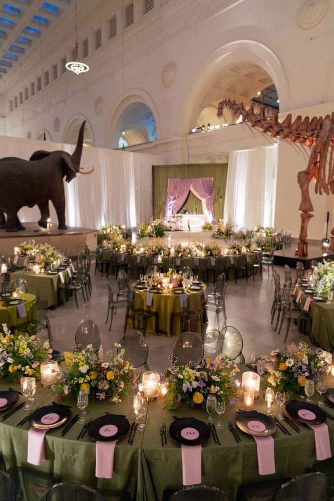 The event captured the attention of Brides magazine, where Daisy and Kylen’s wedding was featured as an example of how thoughtful design can turn a historic institution like the iconic Field Museum into a modern-day love story. From the playful color palette to the inclusion of design-driven rentals, every piece worked together to create an enchanting atmosphere.